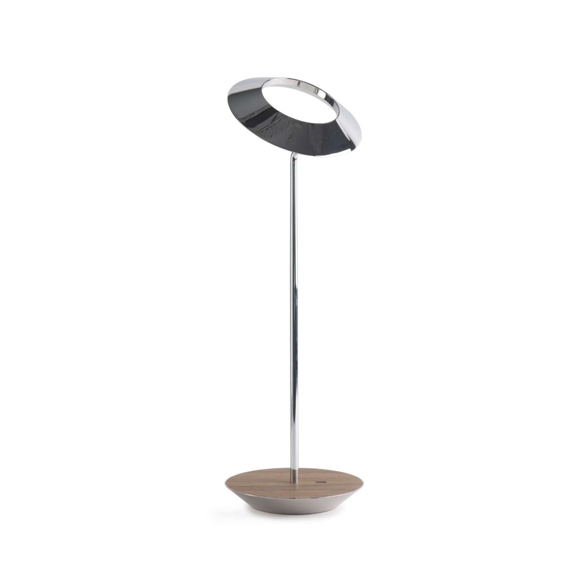 Royyo Chrome With Oiled Walnut Modern LED Desk Lamp with USB Port
